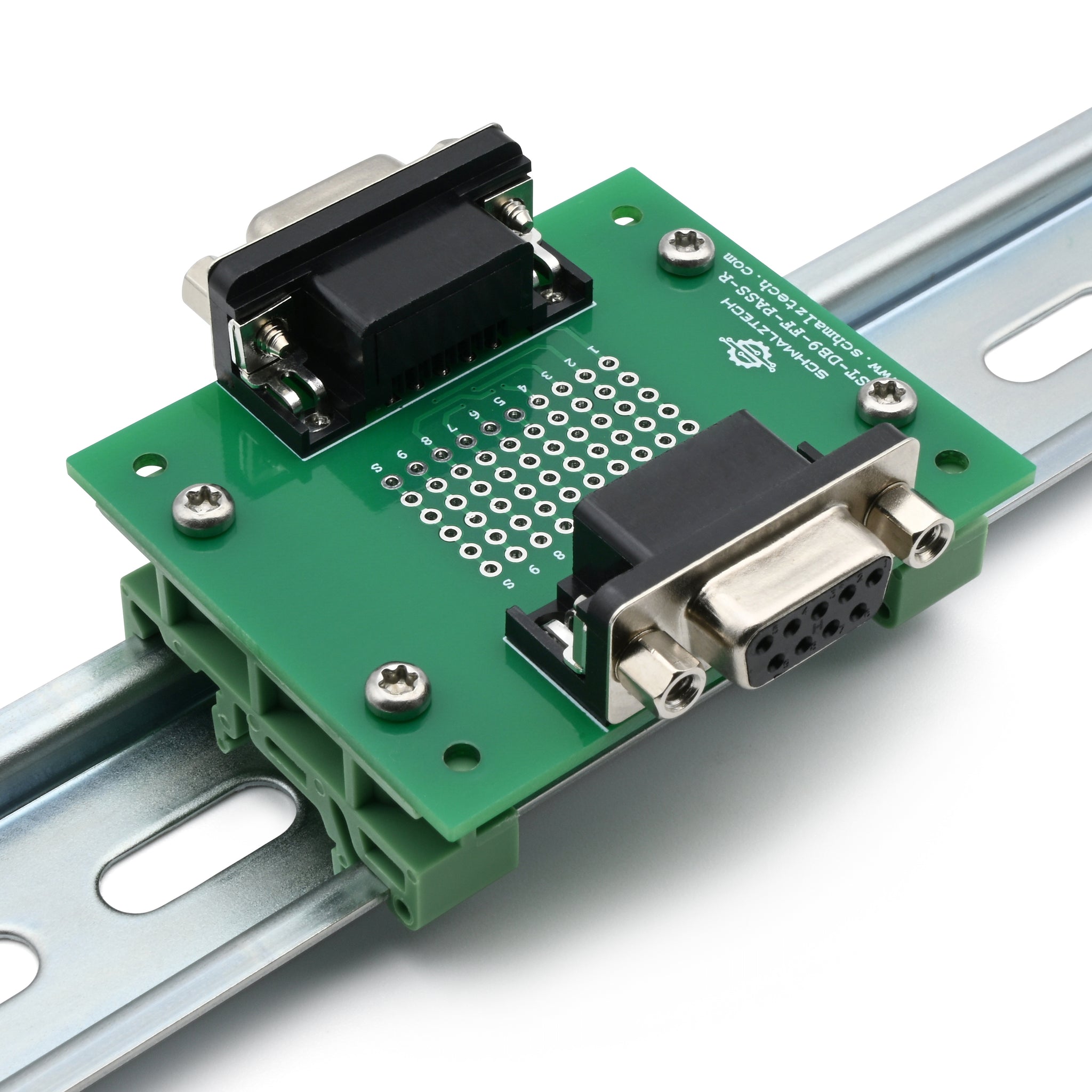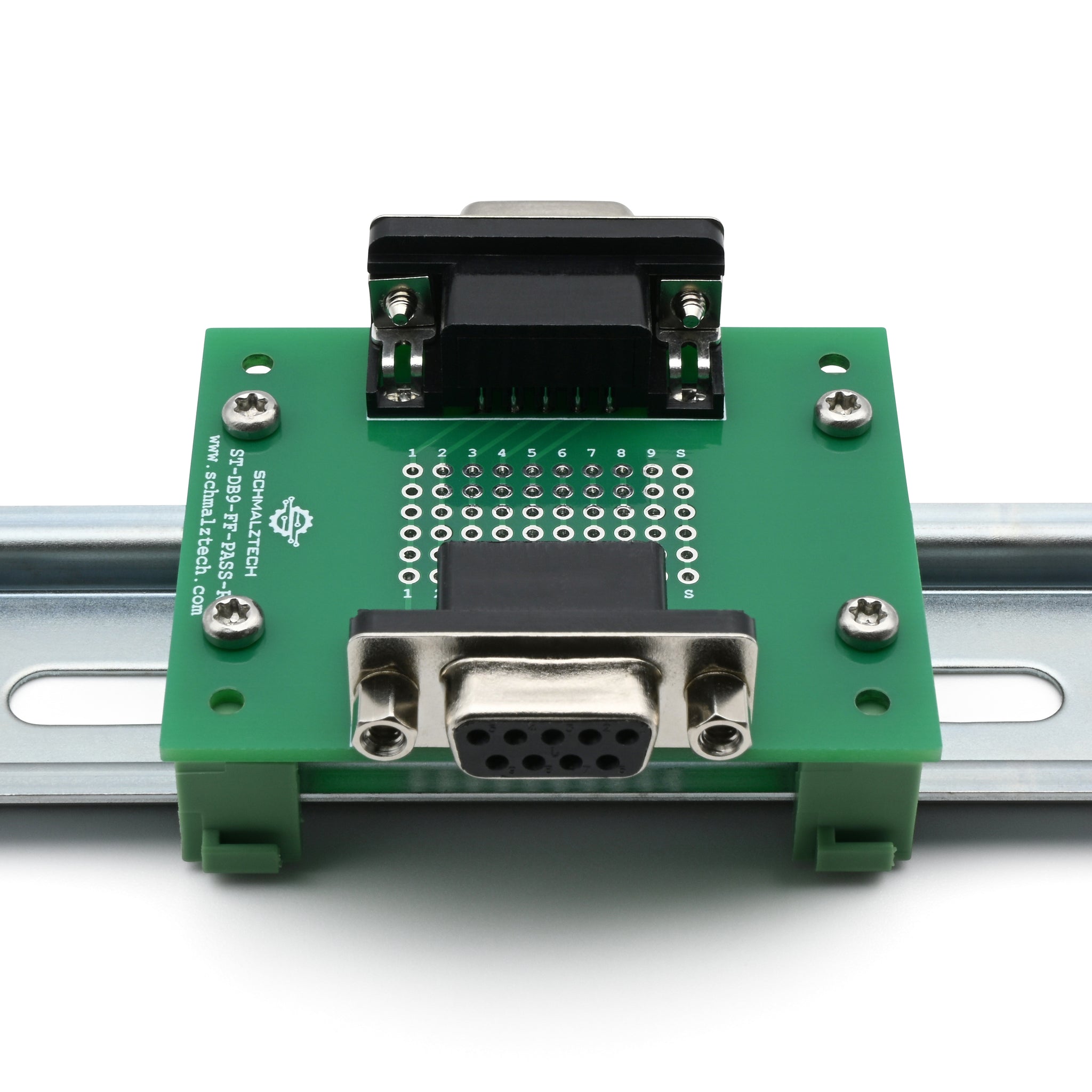 DB9 Female-Female Pass-Through Breakout Board with DIN Clips