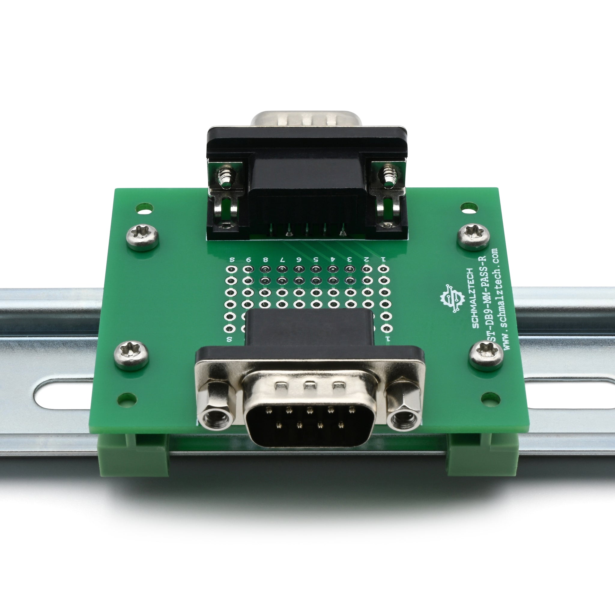 DB9 Male-Male Pass-Through Breakout Board with DIN Clips